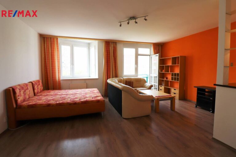 Exkluzivně nabízíme k pronájmu velmi prostorný zařízený byt 1+KK/B o celkové výměře 46 m2 z toho balkon 2,54 m2 ve čtvrtém nadzemním podlaží cihlového domu s výtahem.