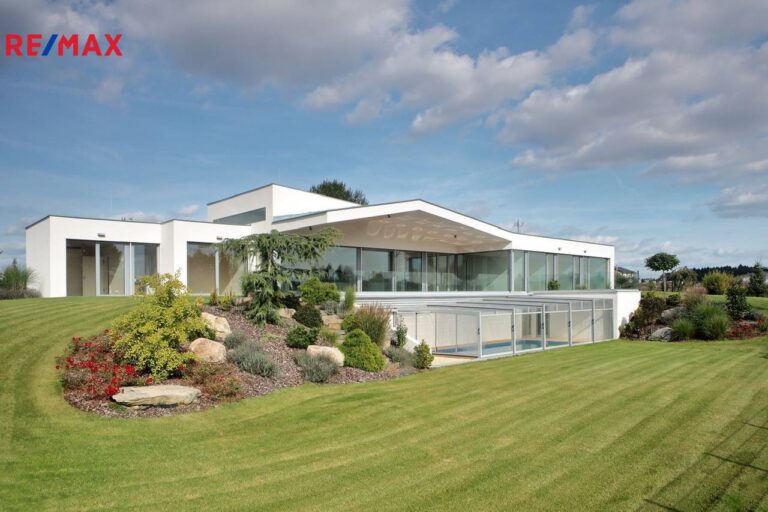 Dům je zcela bezbariérový, jeho velkou výhodou je skutečnost, že se vše podstatné odehrává na jednom podlaží, bez nutnosti chůze do schodů. Dispozice domu s celkovou podlahovou plochou 380 m2 nabízí celkem 5 ložnic a čtyři koupelny s WC, wellness, terasu a dvougaráž.