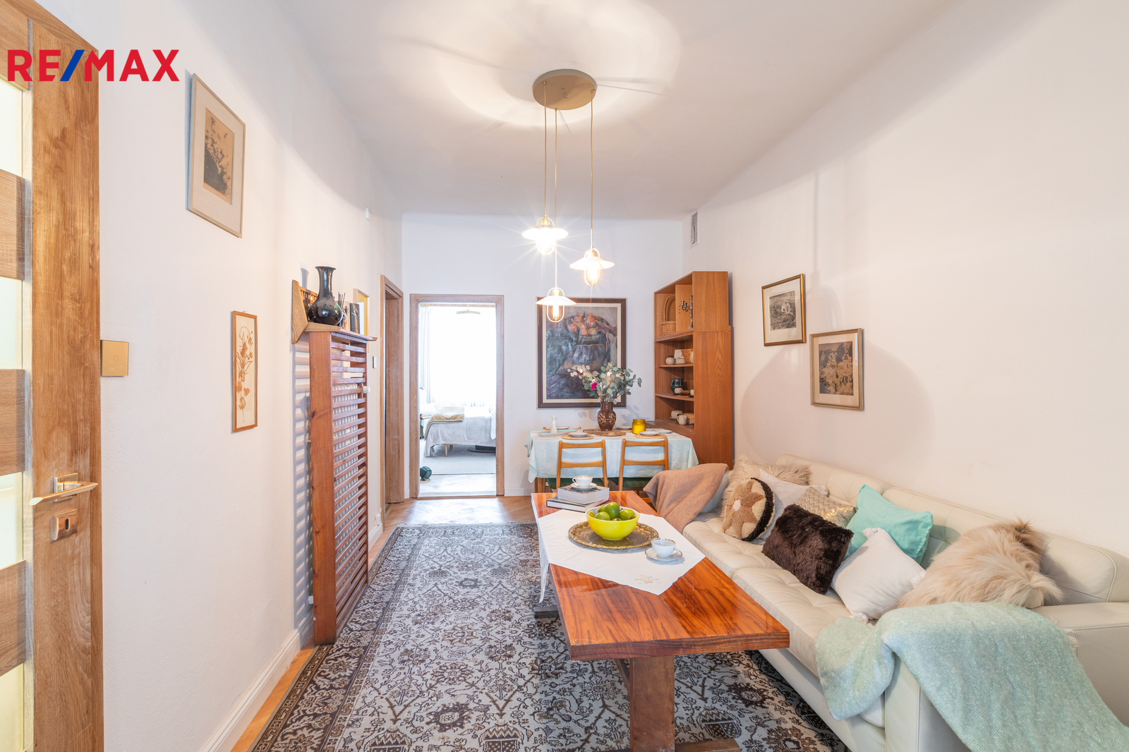 Byt působí vzdušně díky vyšším stropům a obsahuje vstupní předsíň, dvě místnosti orientované do velice klidného dvora, jídelnu a na ní navazující obývací pokoj s hezkým výhledem na západní stranu. Dále je zde koupelna s vanou, samostatné WC s integrovaným umyvadlem, komora/šatna a praktická spíž.