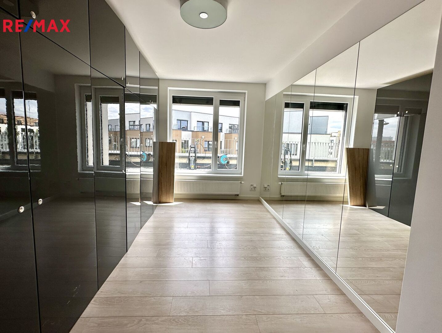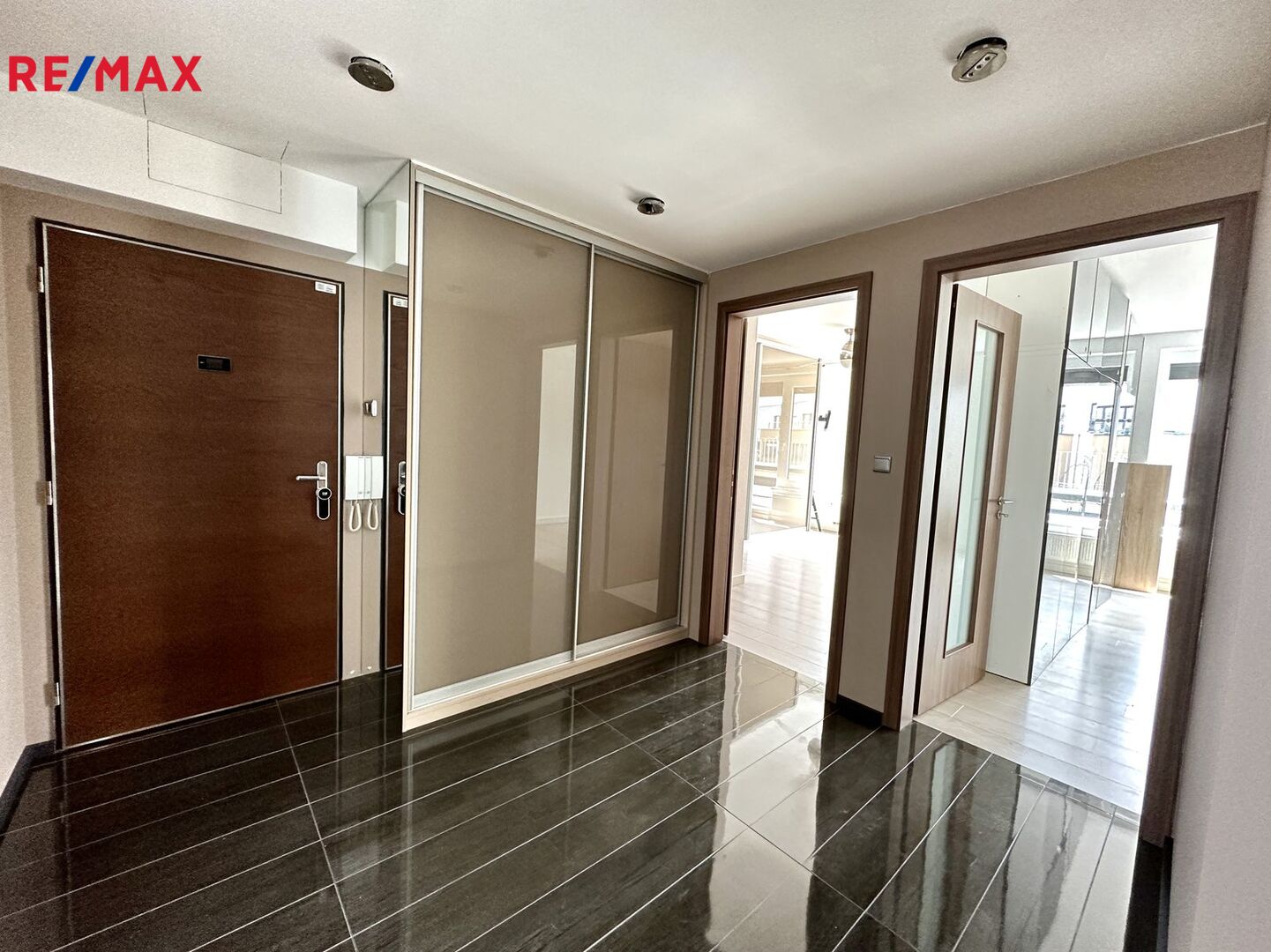 Byt je vybaven: kuchyňská linka s kvalitními vestavěnými spotřebiči, čtyři velké vestavěné skříně, policový systém v šatně a komoře. Na oknech jsou předokenní venkovní, elektricky ovládané, žaluzie. Vstupní dveře jsou bezpečností.